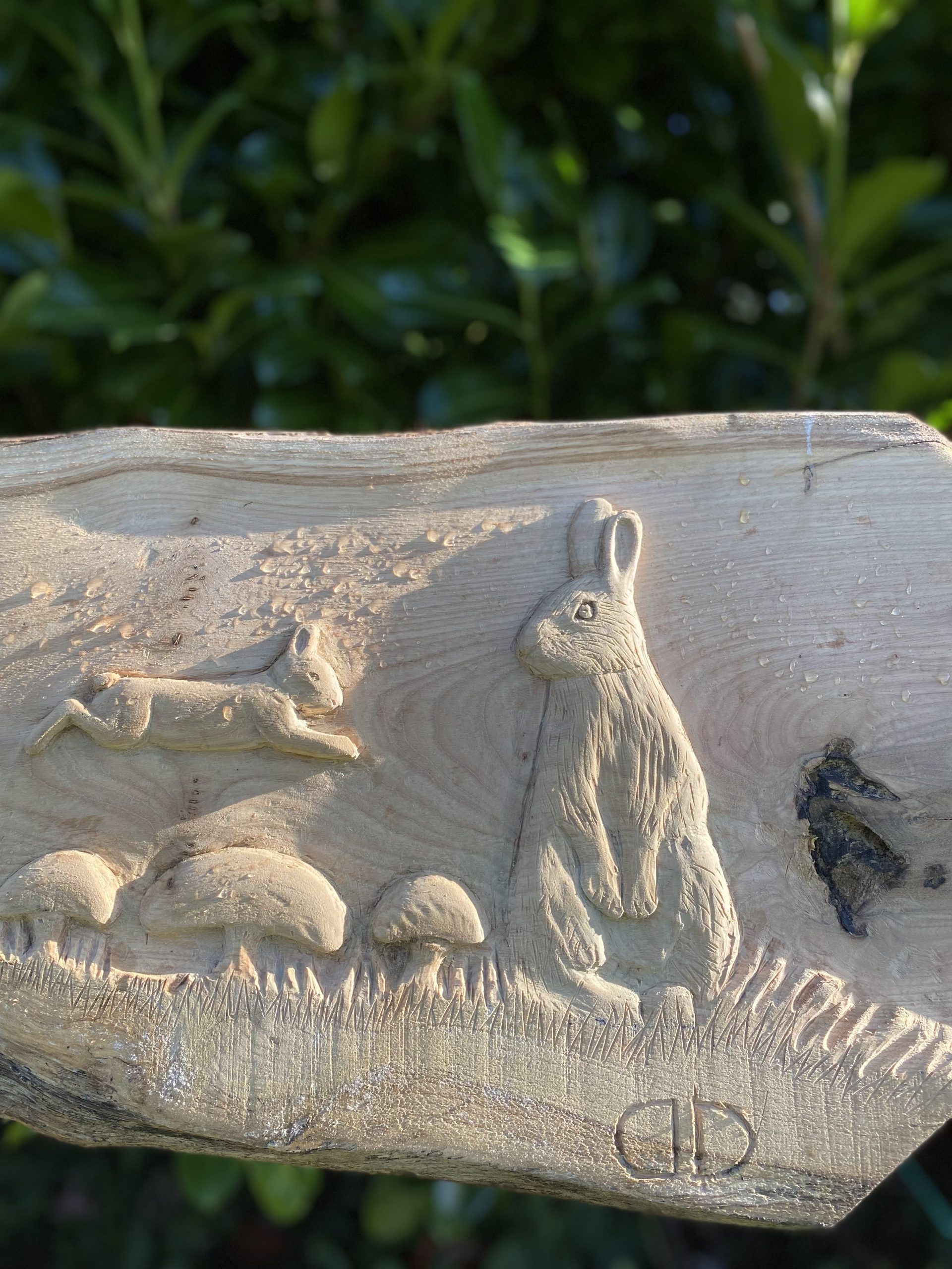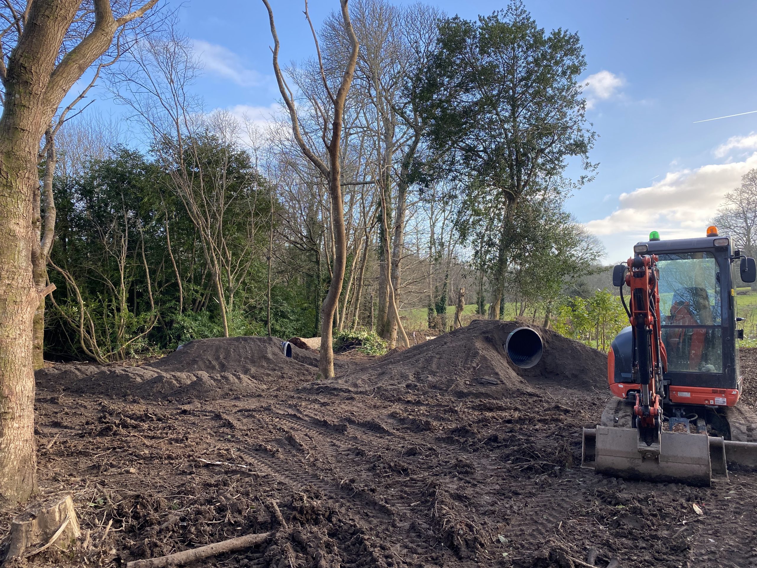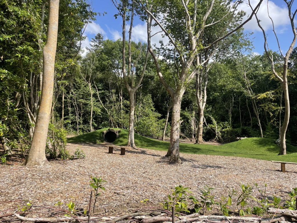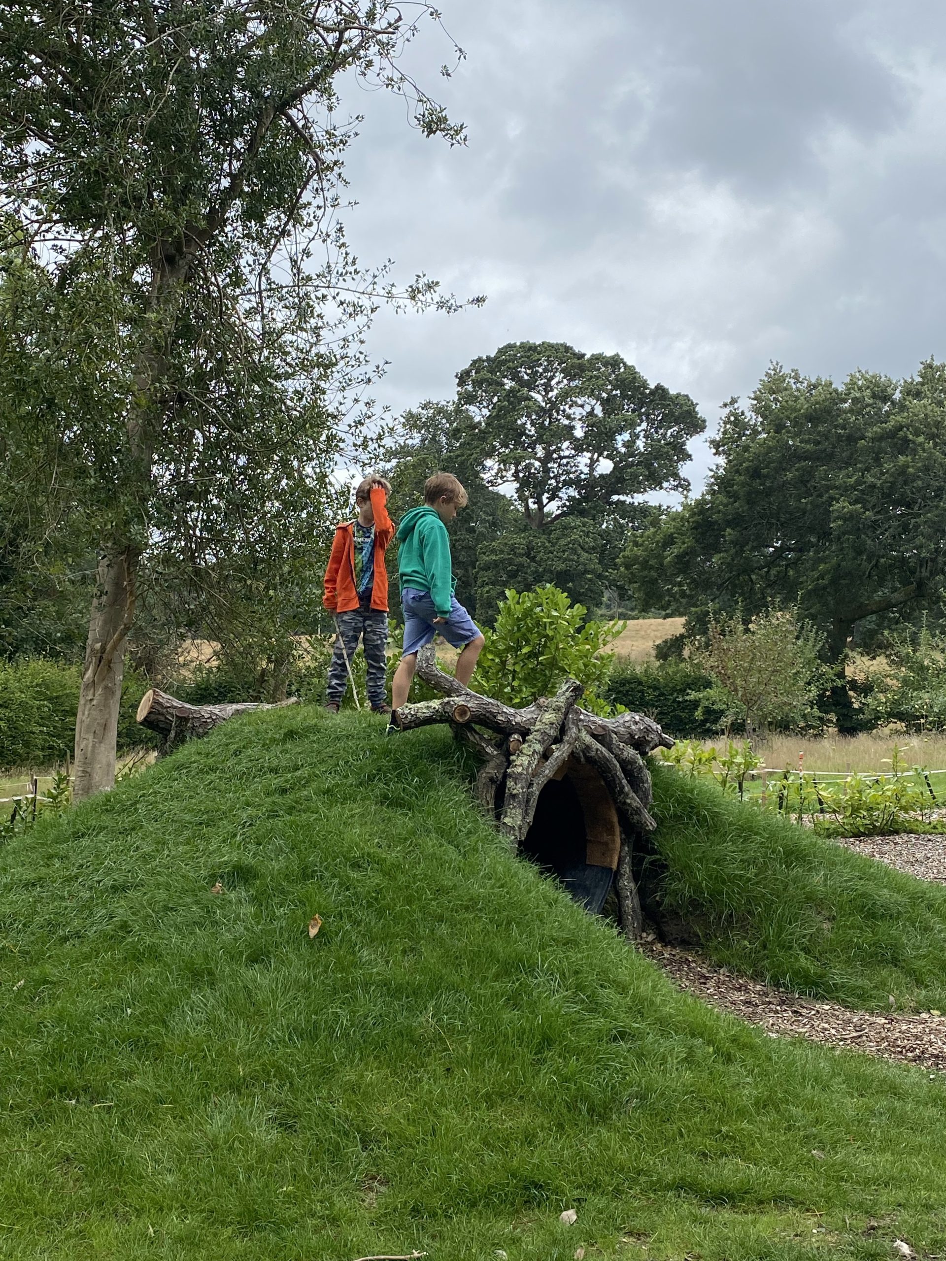 For younger visitors … and their Mums, Dads and Grandparents, our Play Burrow is now open! There’s three separate burrows in grassy mounds, surrounded by a bark-chip play area, with benches for the weary adults! You’ll find it next to the Orchard. The Burrow The Burrow under construction The Burrow Sign Testing